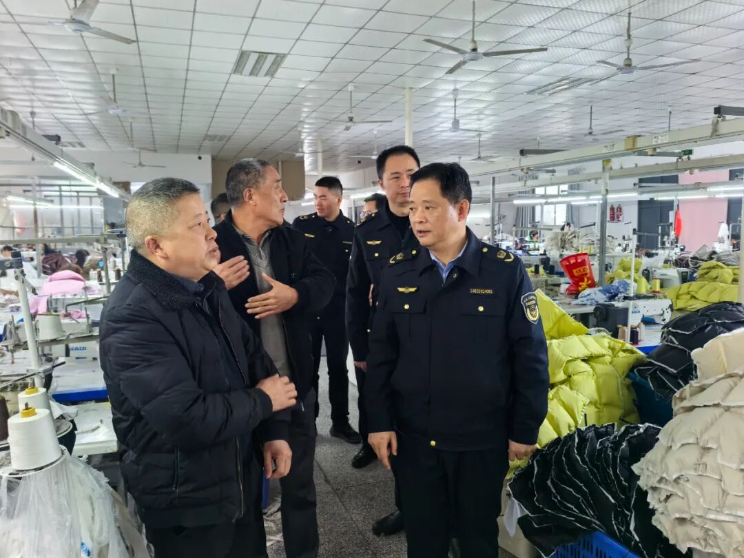在江西嘉欣制衣有限公司,柯文一行详细检查了企业安全教育培训、应急演练和消防安全。他叮嘱企业,要时刻绷紧“安全弦”,做好做真做实安全教育培训,提高员工安全生产意识,将安全工作融入日常,做到企业风险心里有数,安全防范手里有招;同时要突出实效,扎实开展应急演练,切实提高事故发生时员工自救互救能力。