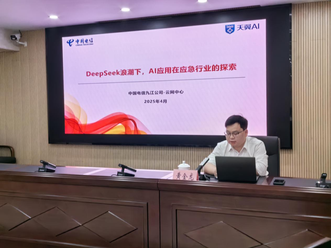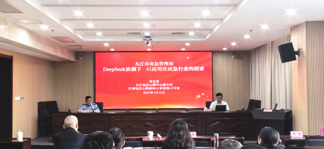 九江电信云网中心副主任黄金龙以“DeepSeek浪潮下,AI应用在应急行业的探索”为主题,从AI进化史与DeepSeek的崛起、DeepSeek个人使用日常技巧、DeepSeek的应用及实现、应急行业智能驱动与场景赋能等四个方面进行了详细讲解,培训主题鲜明、内容丰富、实操性强,既有专业系统的理论阐释,又有生动鲜活的案例讲解,启发性极强。
