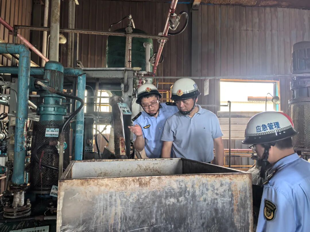 在彭泽县扬帆新材料有限公司,检查组一行深入企业生产一线,详细检查了企业停产整改期间物料安全管控、生产设备安全管理,并要求企业要提高思想重视,对照项目安全设施设计报告,对涉及使用二甲苯以及其它易燃液体物料的车间和工艺开展一次全面自查,做好防静电、物料存放、异常工况处置等各类安全生产风险防范措施,坚决防范事故发生。