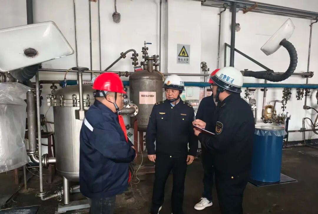 在江西新嘉懿新材料有限公司,检查组深入企业生产一线,实地查看了企业生产设备运行情况、甲类仓库和中控室安全管理,重点检查了企业危险化学品安全管控、受限空间安全管理、特殊作业审批制度落实情况。随后,检查组与闻讯赶来的企业主要负责人、安全管理人员开展座谈,详细了解了企业治本攻坚三年行动开展和事故隐患内部报告奖励机制运行情况,就如何抓好企业安全管理工作进行了深入交流。