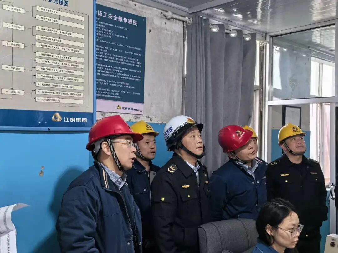 在武山铜矿,检查组一行深入矿山新南副井和三期副井,实地查看了井下提升系统机房、信号传输、安全保护装置运行情况,详细了解了提升机载人、运料安全管控措施落实和罐笼、绞车、钢丝绳等机电运输设备设施维护保养情况,并按照下矿流程,乘坐罐笼深入井下-1028m中段,实地查看三期建设项目通风、排水系统建设情况。